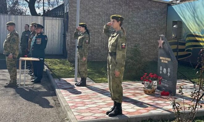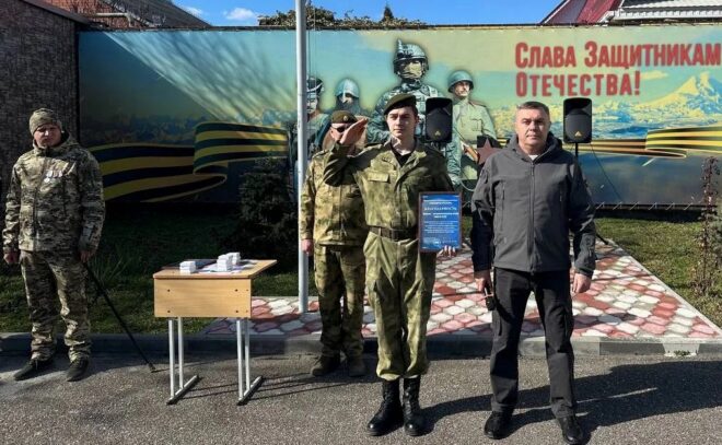 Александр Касмылин от регионального отделения «ОФИЦЕРОВ РОССИИ» вручил благодарность военно-патриотическому клубу «Авангард» при колледже.